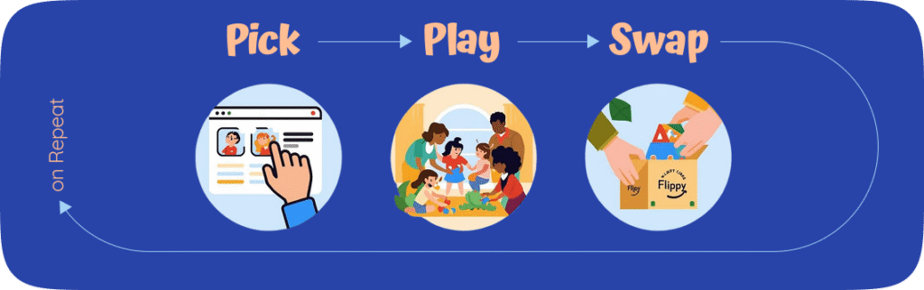 Flippy gives you novel ways to play with our endless library of books, toys, games and gear.